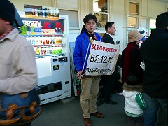 | 気仙沼駅では歓迎イベントが行われていました。 | 写真展や子供向けの写真撮影、フカヒレスープの試飲などです。 | |