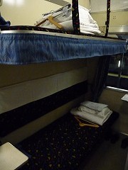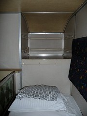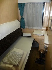 | こちらが今日利用した富士B寝台ソロです。下段は売り切れており,上段を利用しました。(上段は寝台(座席位置)が進行方向と逆になります。) | ||