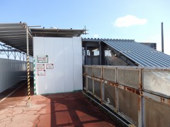 自由通路から工事現場のほうに 一部壁と屋根ができました。 |