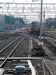 | 14時49分発普通列車が車庫から 4番線に入線しました。 キハ52−115です。 |