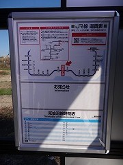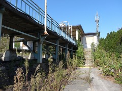 | 歌津駅 歌津駅から本吉方面は バス専用道,柳津方面は 国道45号を通ることとなり ます。こちらも津波の影響で 待合室はなくなり路盤,ホー ムともだいぶ痛んでいます。 |